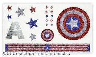Spice up your Captain America look with this sparkling art! Includes one sheet of body art which features a shimmering shield, stars and other Captain America decorations.