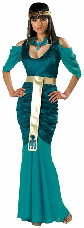 You’ll radiate elegance in this exquisite Cleopatra ensemble. The Egyptian Jewel Costume includes: A velvet dress featuring gathered detail on the skirt, attached flowing organza to give the appearance of an hour glass figure and matching sleeve drapes. A stylized bird collar, sequin headpiece and gleaming gold belt are also included in this sexy style.
