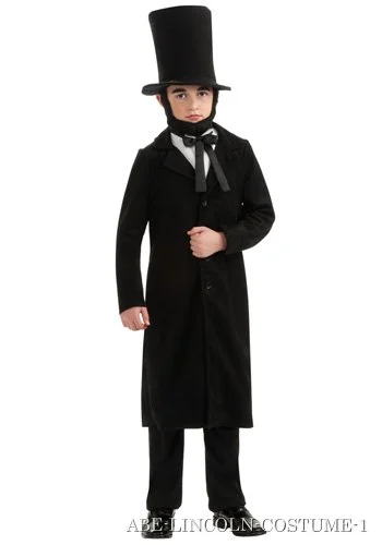 He can be the star of a Civil War play in this kids Abe Lincoln costume! This historical costume includes Abe’s signature tall top hat, a long black jacket that buttons in the front and a pair of black pants with a comfortable elastic waist. The included dickie features a white shirt front and an attached black bow tie. It fastens behind the neck with Velcro and ties behind at the waist. All pieces are made of 100% polyester material. Be sure to check out all of our Civil War and presidential costumes for your reenactments and for Halloween!