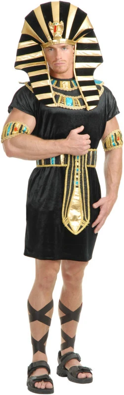 You’ll reign supreme over your next costume bash in this striking King Tut costume. Ancient Egypt never had a better looking leader! Costume includes a black tunic, ornamental headpiece with cobra detail, collar, belt and arm bands. Now just snag a worthy queen and the kingdom is yours!