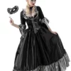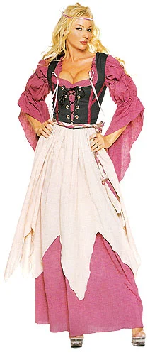 Boned BodicePeasant dressApronBraided RopeThis Ladies Renaissance Pirate Costume is flexible to be worn more or less revealing because of the option to wear it on or off the shoulders. This main part of this outfit is made out of polyester. The sleeves and collar have elastic to give a more secure fit. Two satin ribbons are attached on either side of the neck. The slip on the apron also has an elastic waistband for a comfortable fit. You have the option of tightening or loosening the bodice with a black and gold colored cord. Check out or great accessories to add this great costume!