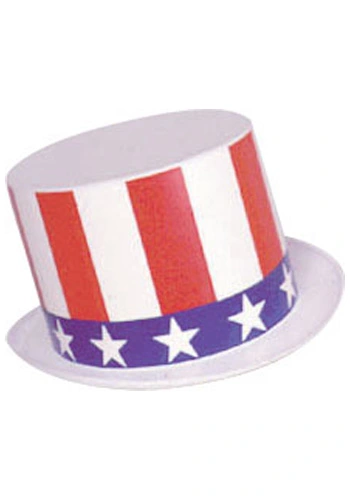 Plastic Uncle Sam hatShow how patriotic you are with this Uncle Sam top hat! The star spangled hat is made of plastic and features a red, white and blue trim that looks like the American flag. The inside of the hat has elastic bands that stretch to keep the hat securely on your head. Celebrate the fourth of July with this patriotic hat!